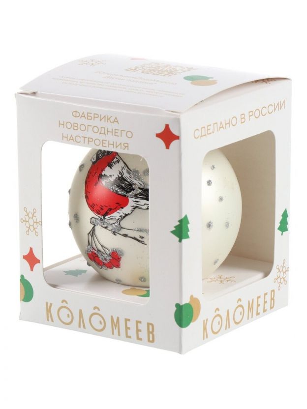 Елочный шар "Веселый снегирь-3" — это не просто новогоднее украшение, а элемент декора, который подчеркнет индивидуальность вашей ёлки. Белое стекло с детализированным рисунком снегиря отлично смотрится как на классических, так и на современных композициях. Если вы ищете, какой елочный шар выбрать для подарка, обратите внимание на этот вариант: он идет в подарочной упаковке и не требует дополнительной подготовки.