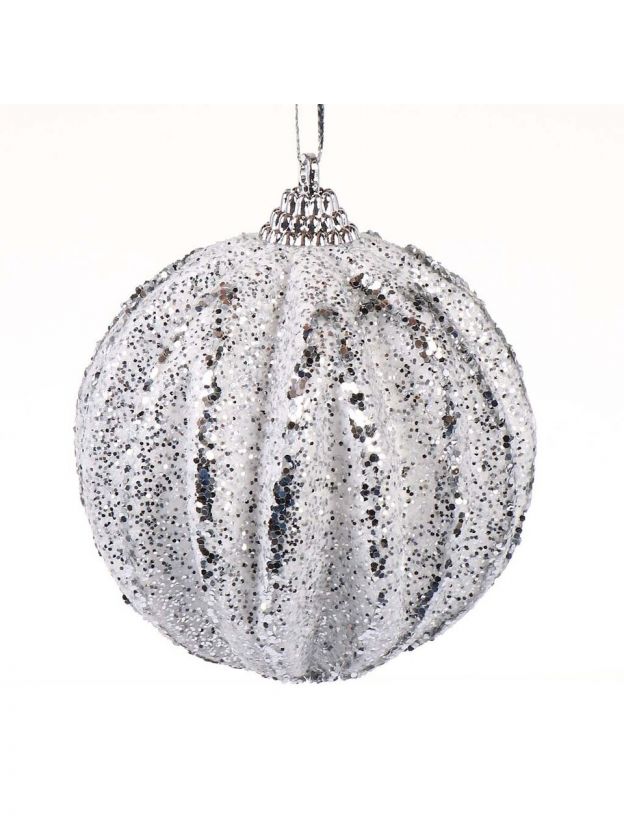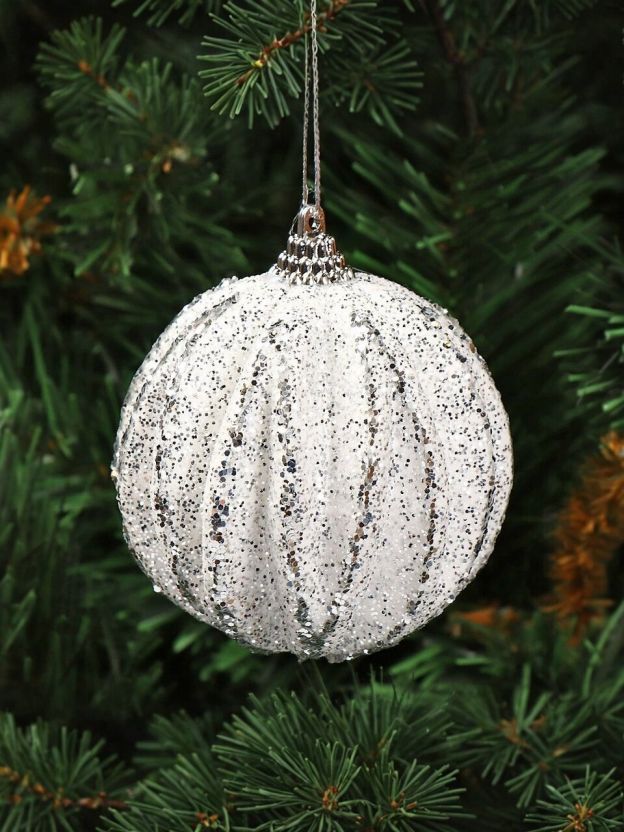Белый елочный шар 8 см с блестками — стильный акцент для праздничного декора, который не разобьётся и подходит для улицы. Украсьте дом или дачу без лишних забот!