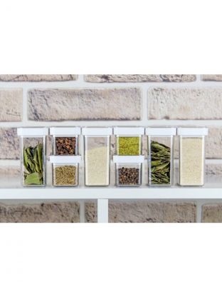Ёмкость поможет организовать порядок на полке. Предназначена для хранения: специй, пряностей, соусов. Крышка выполнена по би–компонентной технологии. Таким образом, внутренний край крышки сделан из эластомера. Вот почему банки герметичные и не пропускают влагу и запахи. Крышка позволит плотно закрыть ёмкость после использования, надолго сохраняя вкус и аромат специй. Изделия имеют прозрачный корпус и крышку. Поэтому всегда видно содержимое и его количество. Благодаря прямоугольной форме можно легко комбинировать заполнение пространства, как в горизонтальной, так и в вертикальной плоскости. Изделие легко моется.