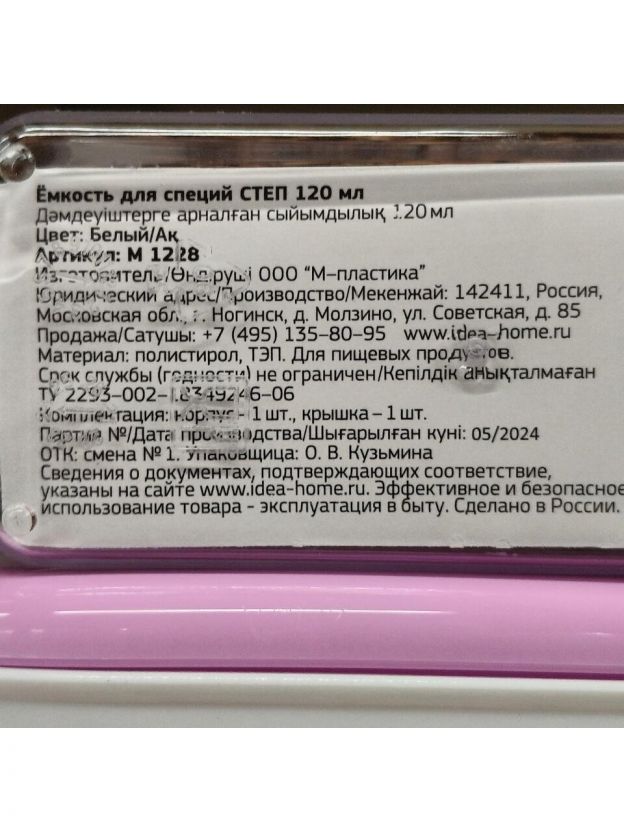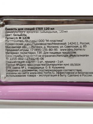 Емкость для специй пластик, 5 см, 120 мл, белая, Idea, Степ, М 1228