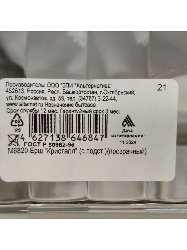 Закажите ерш для туалета Альтернатива Кристалл — получите надёжный аксессуар по выгодной цене с гарантией качества. Быстрая доставка, удобная оплата и прозрачность выбора!