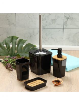 Эргономичный ерш для туалета «Бамбук» 11.5x11.5x12.8 см — стильное решение для чистоты санузла, подходит для дома, дачи и подарка. Долговечный пластик, современный черный дизайн.