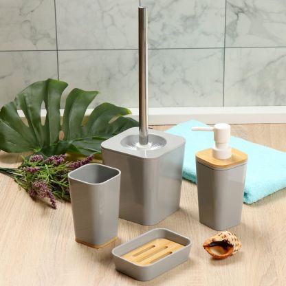 Ерш для туалета Бамбук, напольный, 11.5x11.5x12.8 см, пластик, серый, PS0282GA-TOH