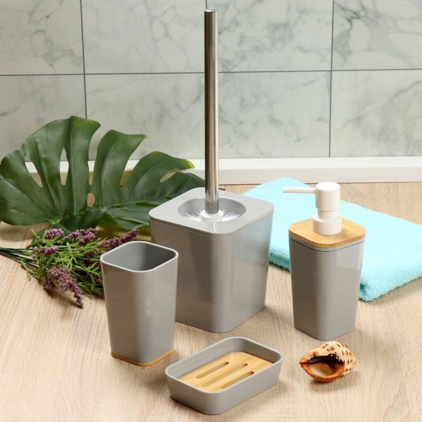 Эргономичный ерш для туалета "Бамбук" 11.5x11.5x12.8 см — компактное решение для чистоты, стильный серый дизайн, выгодная цена для дома и дачи.