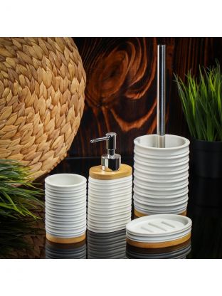 Ерш для туалета Бамбук, напольный, 9.5x9.5x13 см, пластик, белый, RE1386BA-TOH