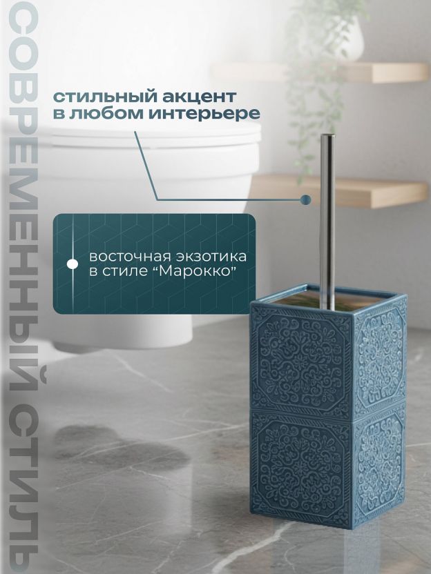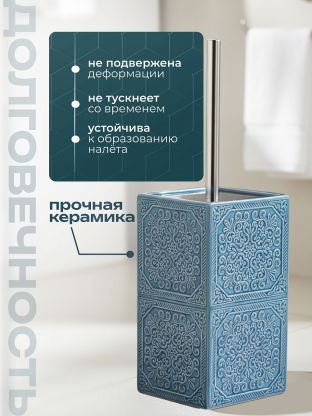 Ерш для туалета «Марокко» - это не просто аксессуар, это элемент, который подчеркнет индивидуальность вашего пространства. Благодаря своей керамической основе, он устойчив к воздействию влаги и легко очищается, что гарантирует долговечность использования. Этот элемент интерьера не только выполняет свою основную функцию, но и привносит нотки элегантности и стиля.