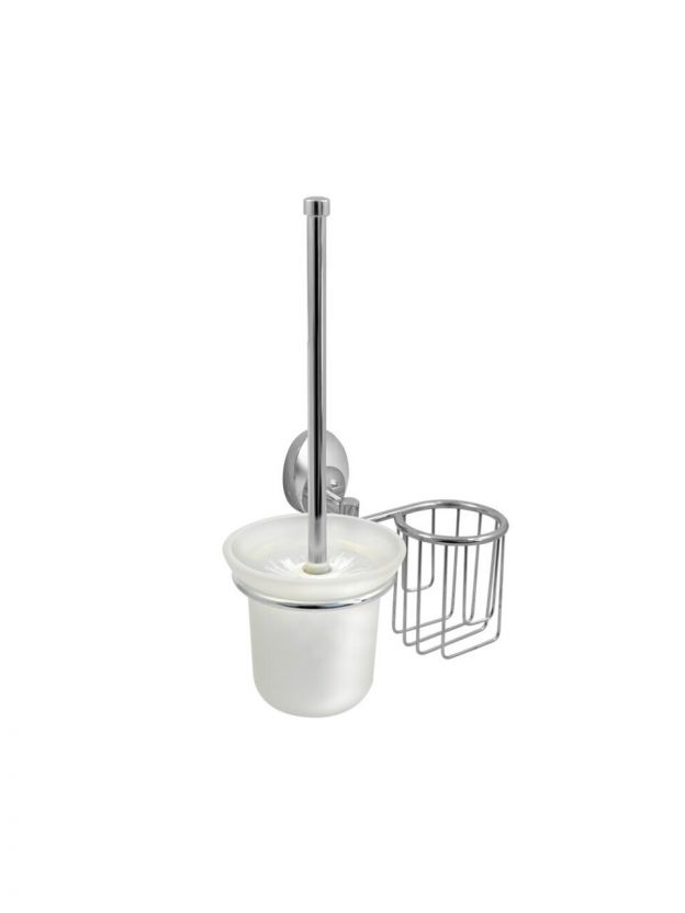 В ерше Solinne Modern сочетаются металл, пластик и стекло. Хромированная поверхность устойчива к влаге, корзинка выполнена из прочного стекла, что гарантирует длительный срок службы и легкость ухода.