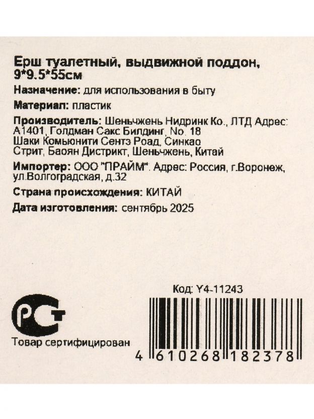 Ерш выполнен из прочного пластика, устойчивого к влаге и бытовой химии. Материал не впитывает запахи и сохраняет внешний вид длительное время.