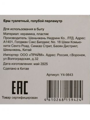 Ерш напольный, не требует крепления к стене, легко перемещается. Цвет — голубой перламутр, материал — керамика, артикул производителя Y4-9843, страна производства — Китай.