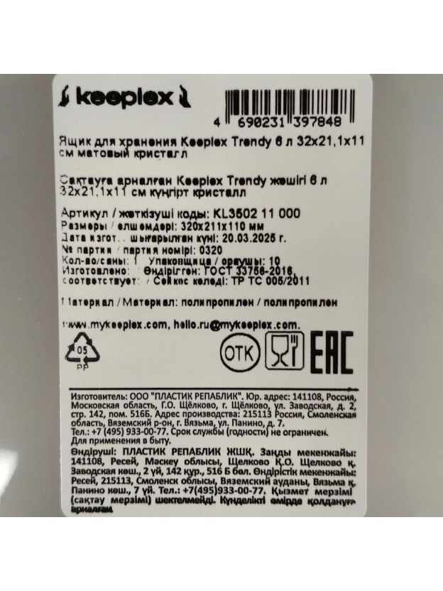 Ящик для хранения Keeplex Trendy - отличное решение для хранения домашних вещей. Ящик подходит для хранения продуктов питания, косметики, одежды, игрушек и многого другого.