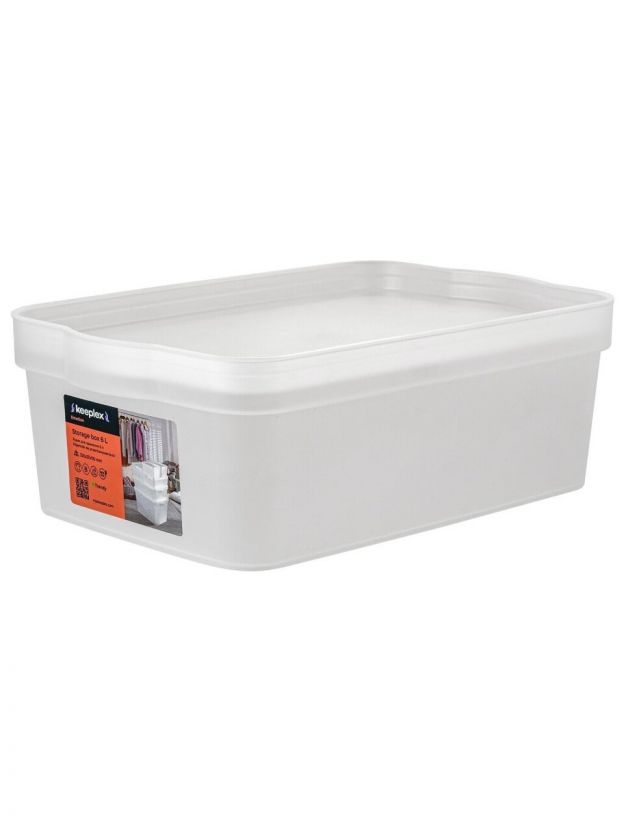 Ящик для хранения, 6 л, 32х21.1х11 см, с крышкой, матовый кристалл, Keeplex, Trendy, KL350211000