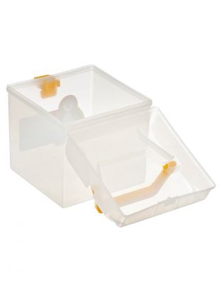 Ящик выполнен из прочного пластика, цвет — бесцветный (прозрачный), что облегчает поиск нужных вещей внутри контейнера.