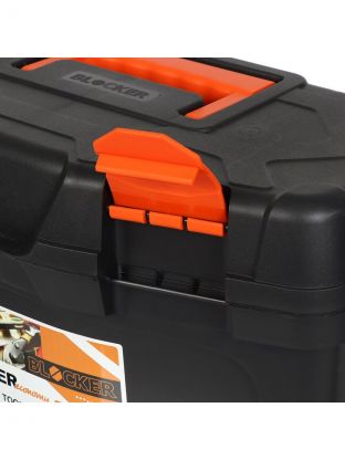 Ящик для инструмента Blocker Master Economy 16 предназначен для хранения отверток, плоскогубцев, молотков и прочего оснащения в порядке. Бокс изготовлен из прочного пластика в черно-оранжевой расцветке. Такому материалу не страшны падения и удары. Габариты ящика Blocker Master Economy составляют 23x21.5x40.5 см, а его вес без наполнения – меньше килограмма.