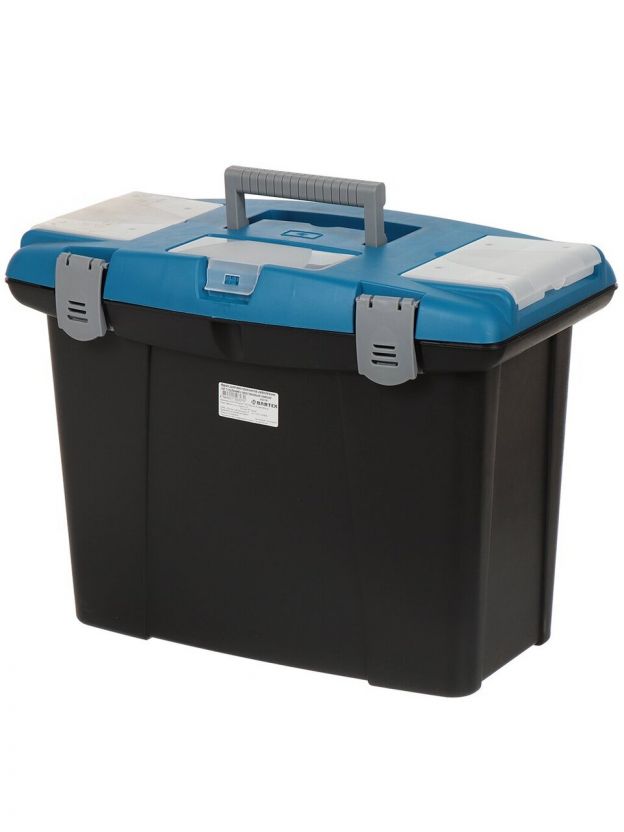 Ящик для инструментов – надежный друг и помощник любого мастера. Модель Bartex 27802205 позволит грамотно организовать рабочее пространство и держать все нужные инструменты под рукой. Изделие выполнено из прочного пластика. В комплект входит съемный лоток, установленный на глубокое внутреннее отделение. Ящик закрывается при помощи пластиковых замков. Характеристики: Тип: ящик для инструментов. Материал: пластик. Высота: 36 см. Размеры верха (ДхШ): 48х28 см. Размеры дна (ДхШ): 40х19 см. Внутренние размеры без лотка: высота 29 см; дно 38х17 см; верх изнутри 45х24 см. Отделения: глубокий корпус; съемный лоток с ручкой; 3 отсека в крышке. Температура эксплуатации: от -30 до +50°С. Преимущества: Надёжные замки не допустят случайного открывания. Качественный и прочный пластик гарантирует длительную эксплуатацию изделия. Внутренний съемный лоток и 3 дополнительных отсека в крышке для комфортного хранения мелких деталей. Удобный и вместительный ящик Bartex поможет Вам поддерживать порядок в рабочей зоне квартиры, дачи или гаража. Гармоничное сочетание мобильности и функциональности делает ящик универсальной единицей в системе хранения Ваших инструментов. Стильное исполнение ящика позволит Вам сэкономить до 40% пространства и хранить его даже дома, причем без ущерба для дизайна.