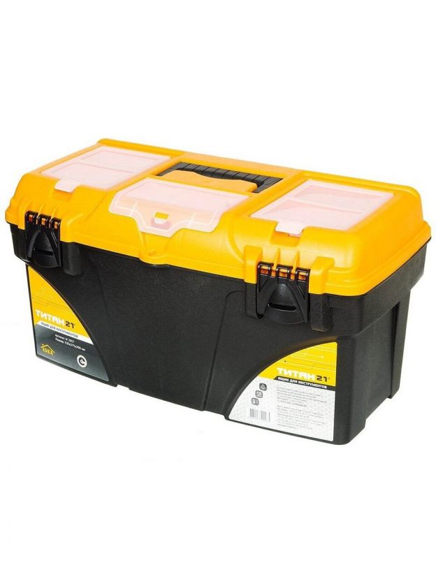 Титан М2937 — простой и надежный ящик, используемый для хранения и транспортировки инструментов, метизов и различных хозяйственных мелочей. Имеет отдельные прозрачные секции в крышке.