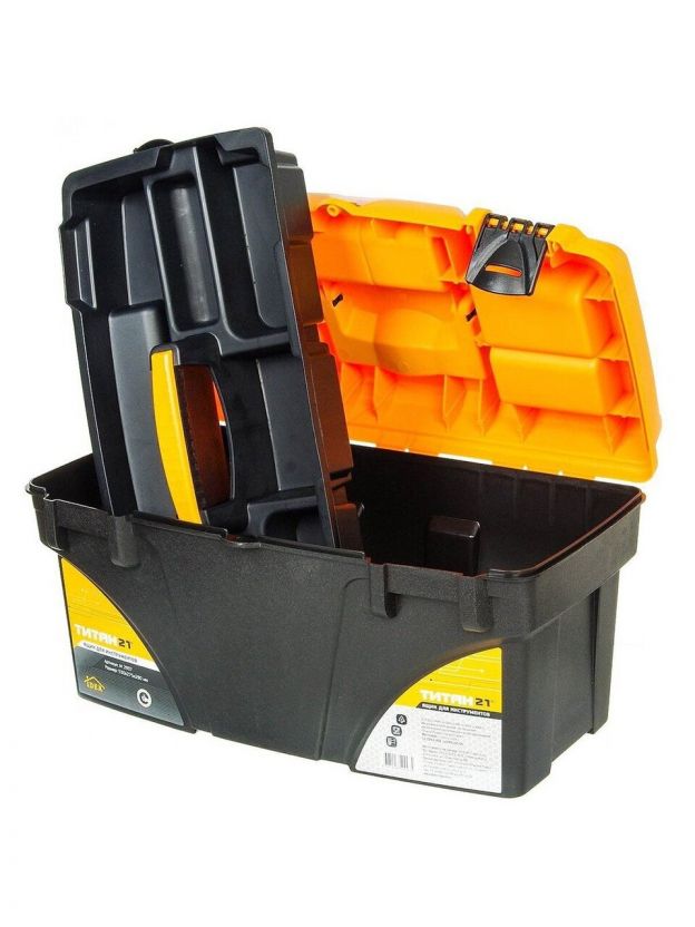 Титан М2937 — простой и надежный ящик, используемый для хранения и транспортировки инструментов, метизов и различных хозяйственных мелочей. Имеет отдельные прозрачные секции в крышке.