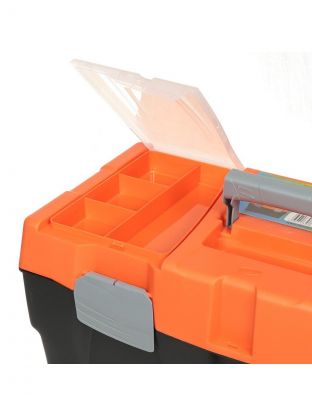 Универсальный ящик оснащен несколькими отсеками для хранения инструмента и различных мелочей, которые необходимы мастеру для выполнения ремонтно-монтажных работ. Бокс имеет удобную форму, очень удобен в эксплуатации, хранении и при транспортировке.