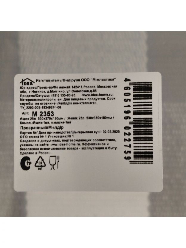 • Размер ящика (с учетом крышки): 53х37х18 см.
