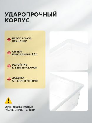 Ящик хозяйственный 25 л, 53х37х18 см, с крышкой, прозрачный, Idea, М 2353