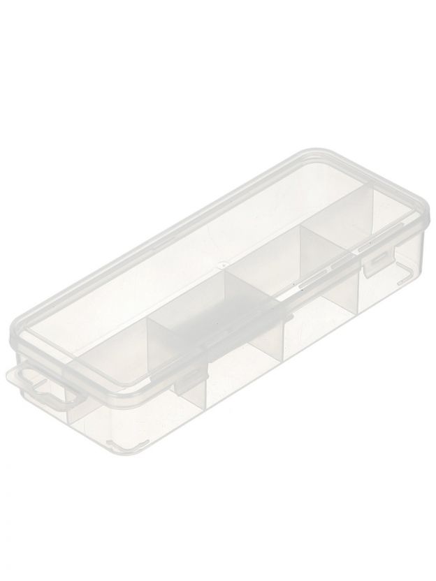 - Компактные размеры 20х8х3.5 см, прозрачный пластик — легко контролировать содержимое, не занимает лишнего места