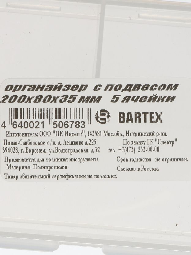 Ящик-органайзер Bartex — оптимальный выбор для тех, кто ищет, как удобно хранить инструмент или мелкие детали. Благодаря пяти отдельным отсекам и прозрачному корпусу, вы всегда видите, что находится внутри, и быстро находите нужный элемент. Если вы ищете, какой органайзер лучше для хранения крепежа, обратите внимание на эту модель: она легкая, не занимает много места и легко крепится на стену с помощью подвеса.