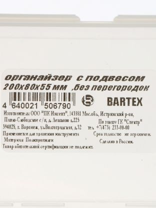 Ящик-органайзер для инструмента, 20х8х5.5 см, пластик, Bartex, с подвесом, 27803550522