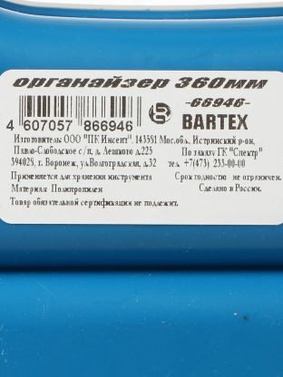 Ящик-органайзер для инструмента, 36 см, пластик, Bartex, 66946, 2780355031