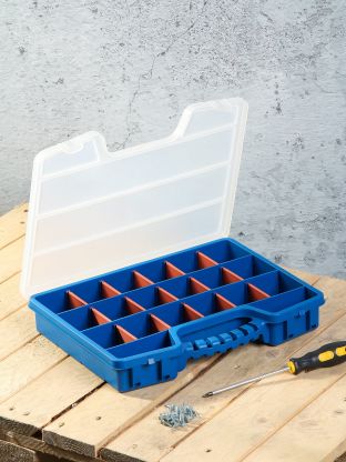 Оптимален для хранения ручного инструмента, гвоздей, саморезов, швейных и рыболовных принадлежностей. Удобен для дома, дачи, гаража и в качестве подарка.