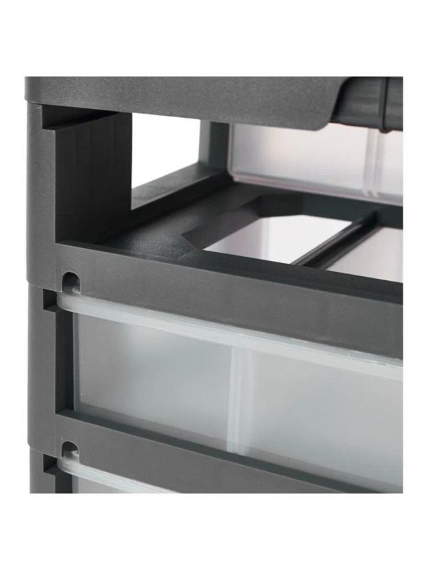 Вертикальный органайзер помогает содержать в порядке, переносить на место выполнения работ и быстро находить метизы и аксессуары.