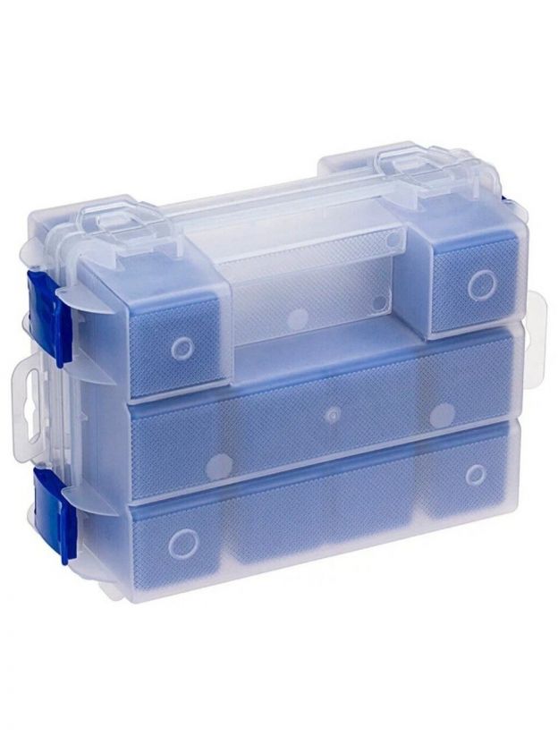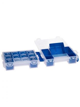 Яркий, удобный, вместительный органайзер с ячейками будет незаменим для хранения принадлежностей рукоделия, рыбалки, ремонта. Удобен для сортировки небольших предметов. Имеет 12 ячеек различного размера, 10 из которых вынимаются. Конструкция сделана таким образом, что при транспортировке содержимое не будет пересыпаться из одной ячейки в другую. Компактный органайзер удобно взять с собой в путешествие. Легко и надёжно закрывается на защёлки. Имеется петля для подвеса.
